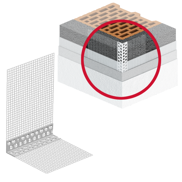 Hőszigetelő rendszerek sarokerősítését, valamint 90°-os épületsarkok és élek, ajtó és ablakok + éleinek kialakítását szolgálja. A hálós túlnyúlás optimális átfedést biztosít, és megakadályozza a repedést a sarkokon.