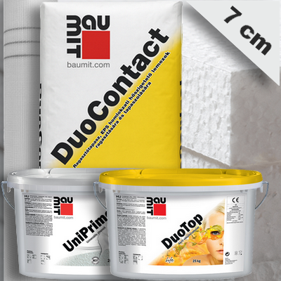 A Baumit DuoContact ragasztó egy kétfunkciós, professzionális ágyazóhabarcs, amelyet homlokzati hőszigetelő rendszer rögzítésére és a háló beágyazására használnak. Alkalmas hungarocell szigetelés stabil rögzítésére, emellett kiváló tapadóereje és feldolgozhatósága révén tökéletes választás új építésű vagy felújítás alatt álló homlokzatokhoz. A DuoContact a minőség és tartósság garanciája a komplett szigetelőrendszer kialakításában.