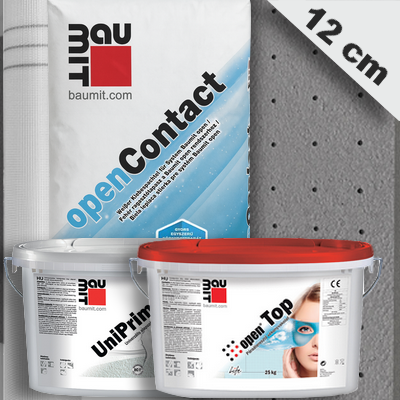 Baumit Open grafitos hőszigetelő rendszer 12 cm páraáteresztése megegyezik a kerámia-téglákéval (μ=10). Ideális megoldás vályogfalak utólagos hőszigetelésére. Az építési nedvesség jóval gyorsabban távozik a falazatból. A kivitelezés folyamán, mindenképpen használjuk a OpenPlus lemezek rögzítéséhez dűbeleket, legalább 4-6db-ot m2-ként.